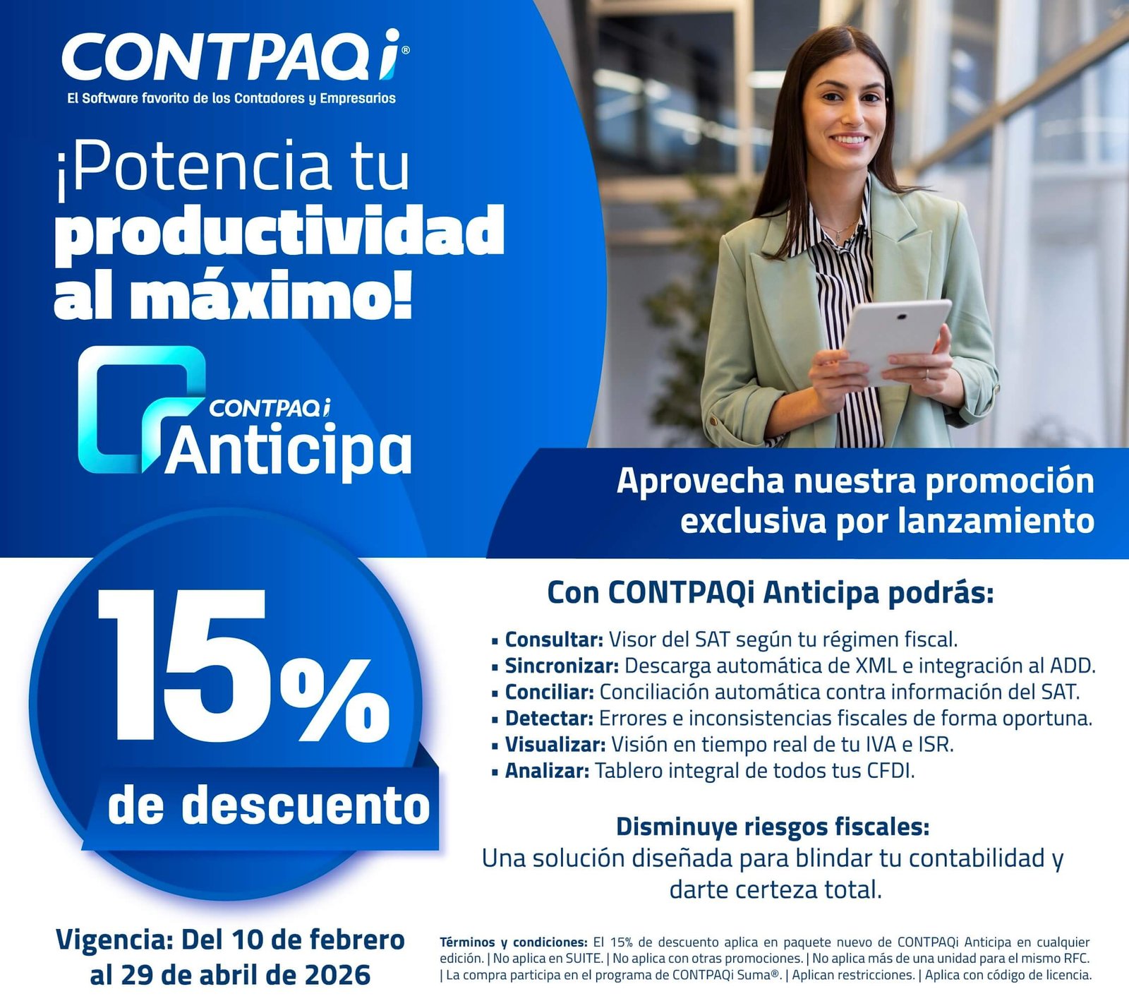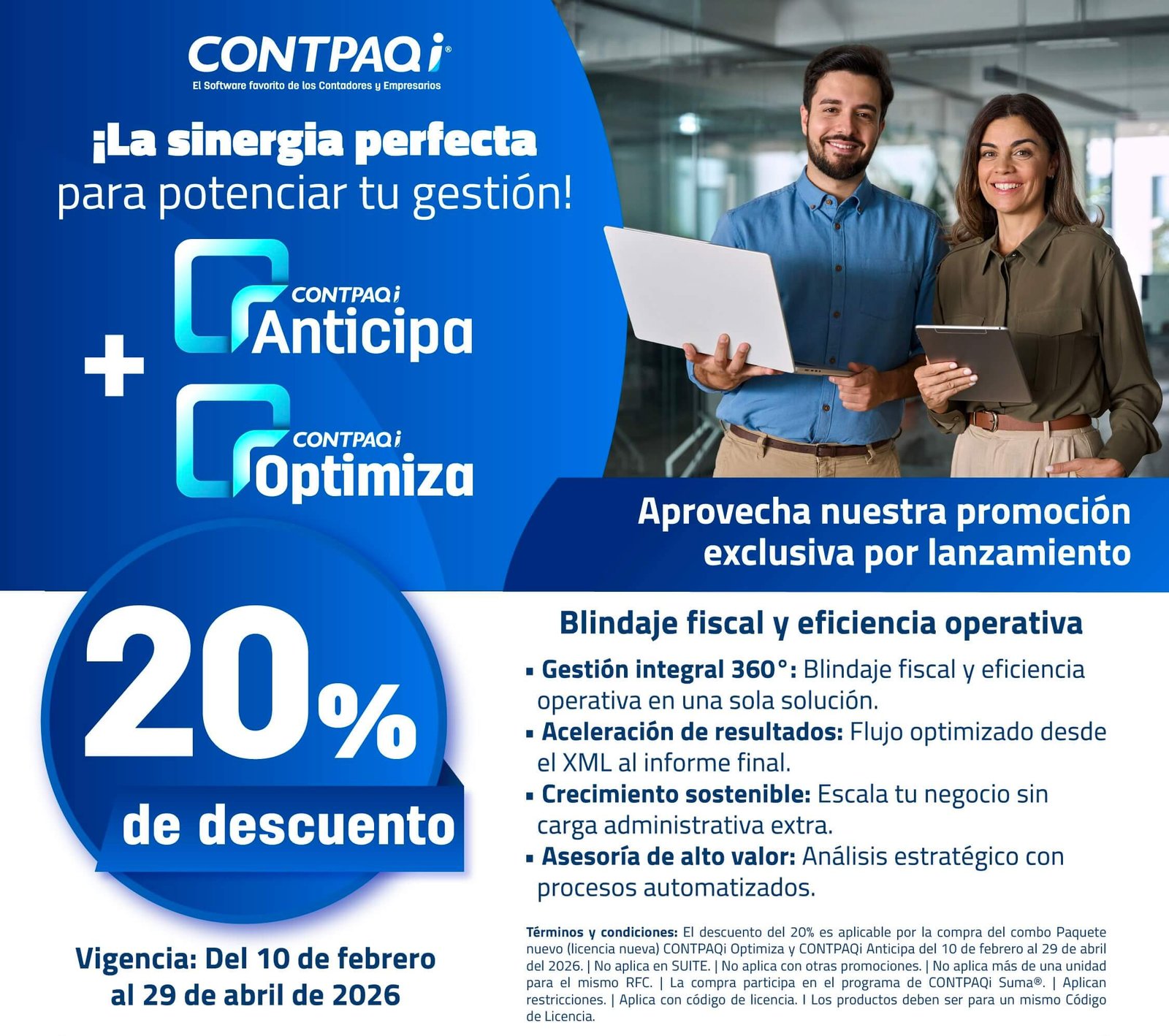 - 20% OFF al adquirir CONTPAQi Anticipa® y Optimiza®