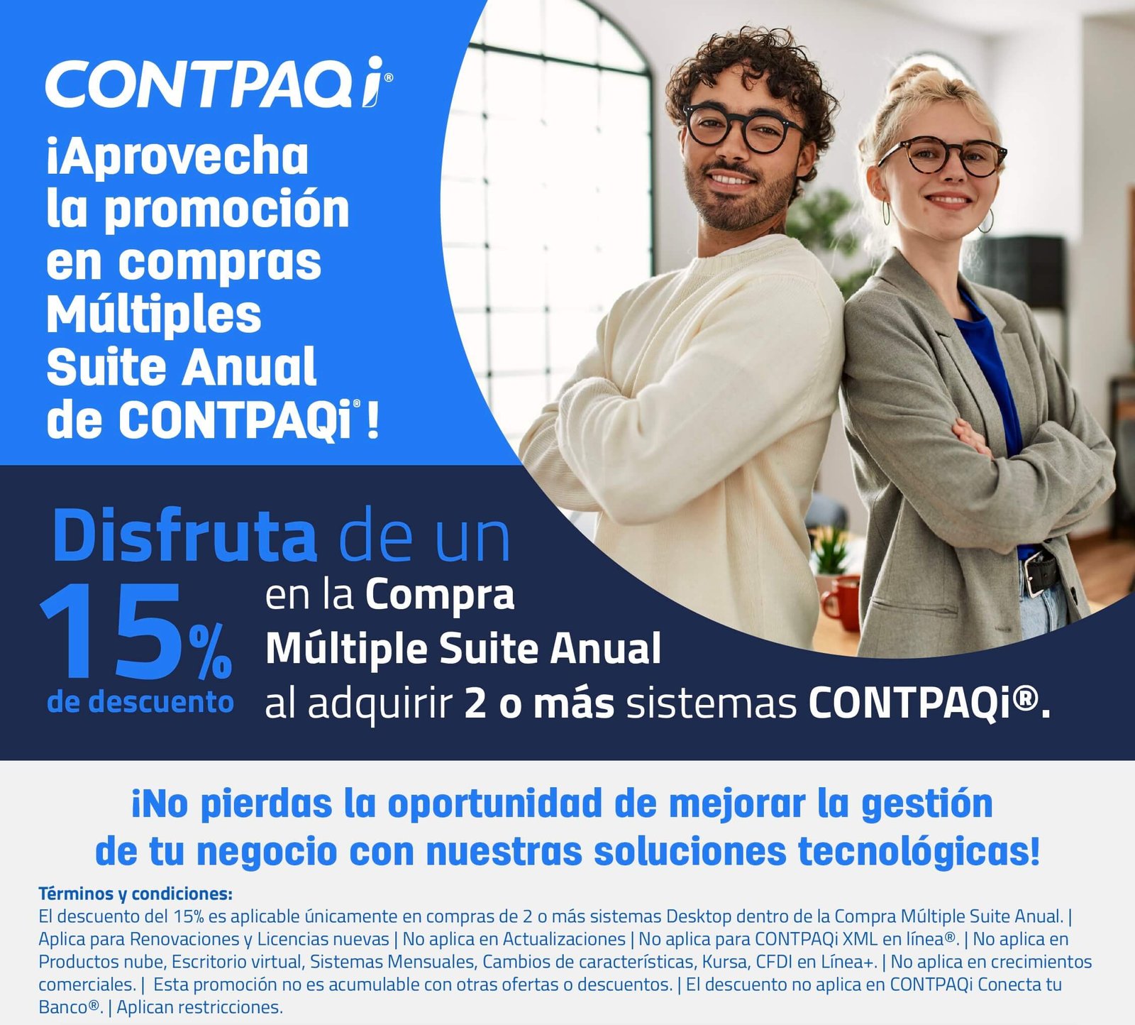 - 15% OFF al adquirir 2+ sistemas CONTPAQi®